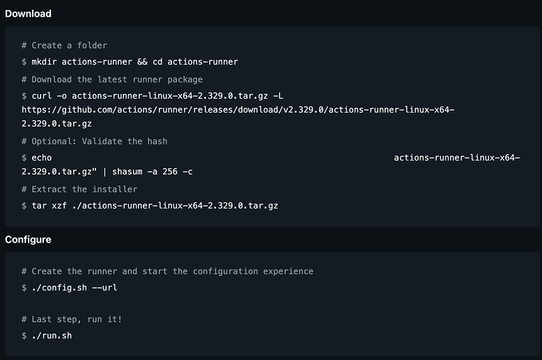 내 github 저장소 > Settings > Actions > Runners > New self-hosted runner