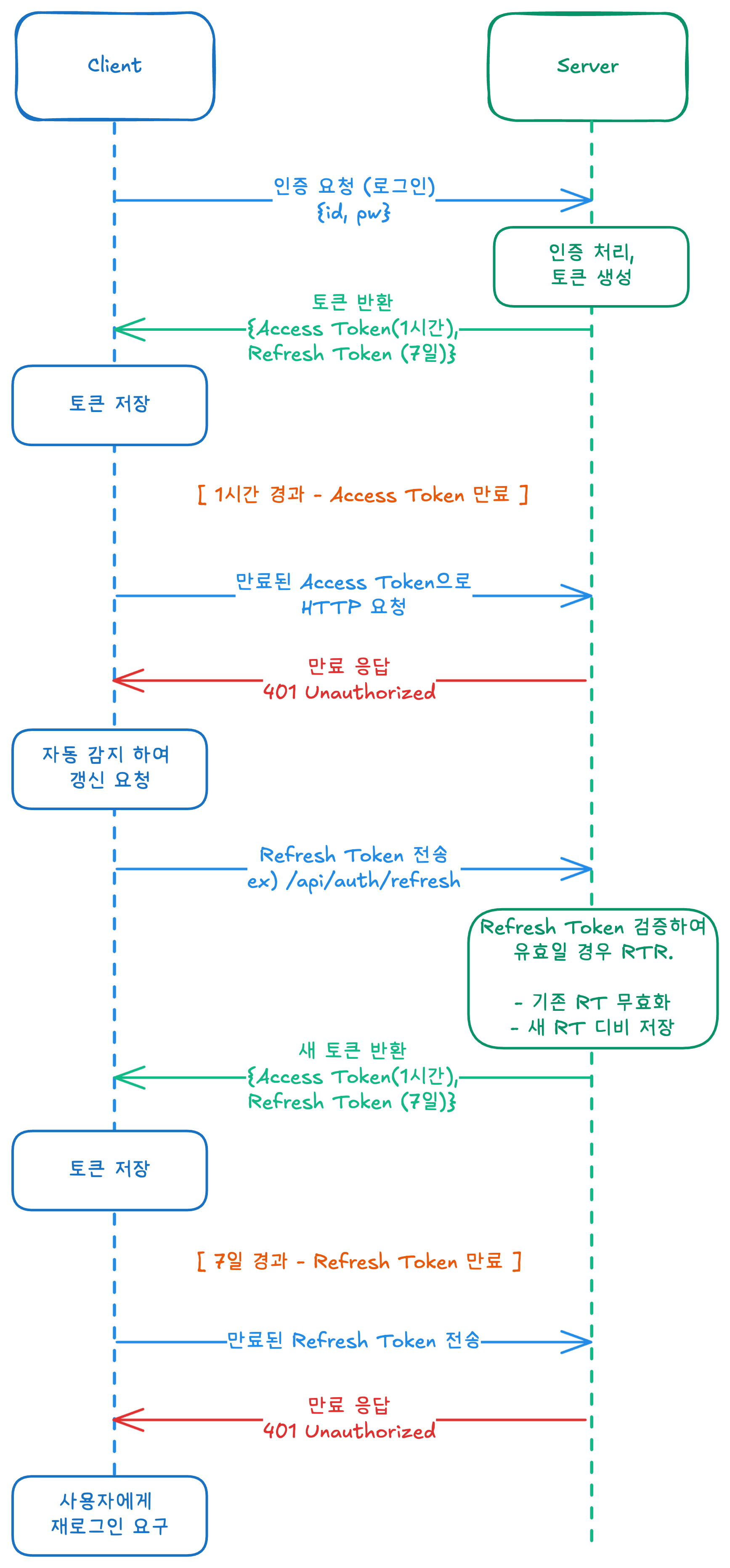 이는 자주 사용되고 짧게 유지되어야 하는 Access Token의 특성과 맞지 않으며, 결과적으로 인증 구조가 세션 기반 인증과 크게 다르지 않게 되는 문제가 있다.